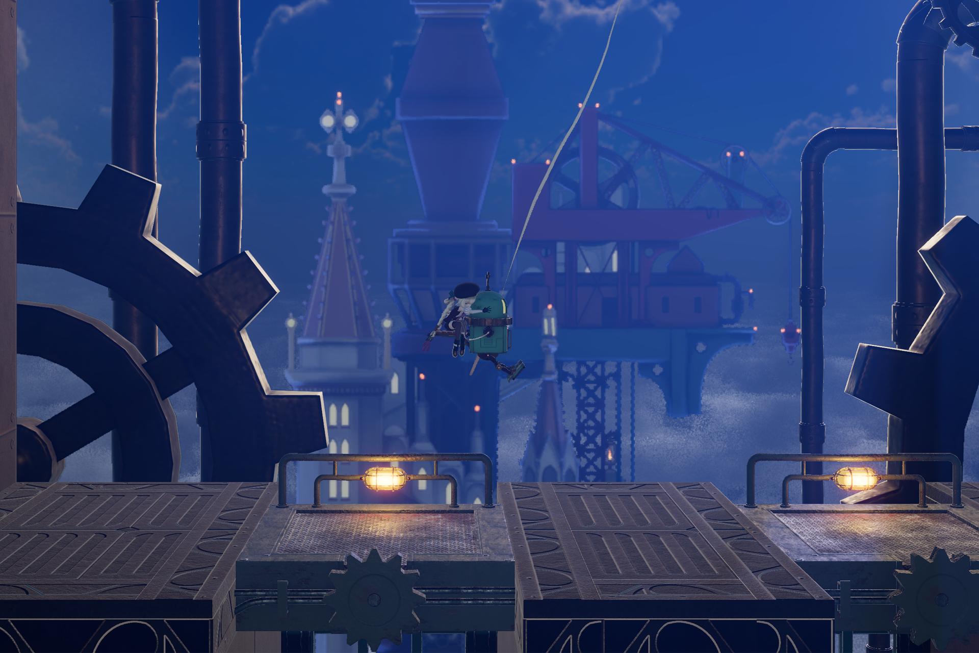 少女とロボットが謎の塔の頂上を目指す。スチームパンクのワイヤーアクションゲーム「セナとペグと不思議な塔」,体験版をSteamで配信開始