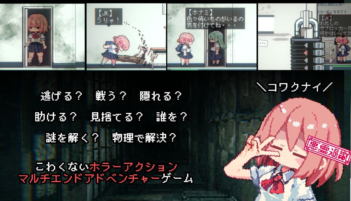 必殺技「コワクナイ!」で怖さを発散。ホラーが苦手な人でも楽しめる「おばけなんて怖くないJK VS 学校迷宮」,プロトタイプ版をSteamで公開