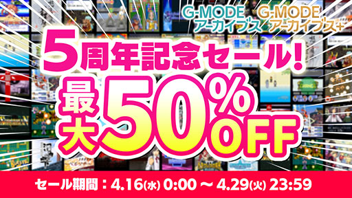 5周年を記念して「G-MODEアーカイブス」「G-MODEアーカイブス+」のタイトルが最大50%オフとなるセールを行います。