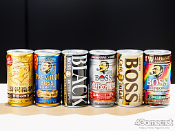 もったいぶるようなものでもないので結果から発表します。ドンっ。このとおり全種揃えることができました。その旅の話は後半にということで,コラボレーションを記念した新商品「ボスex 進化の微糖」+BOSS主力5ブランドのコラボデザインを紹介します。