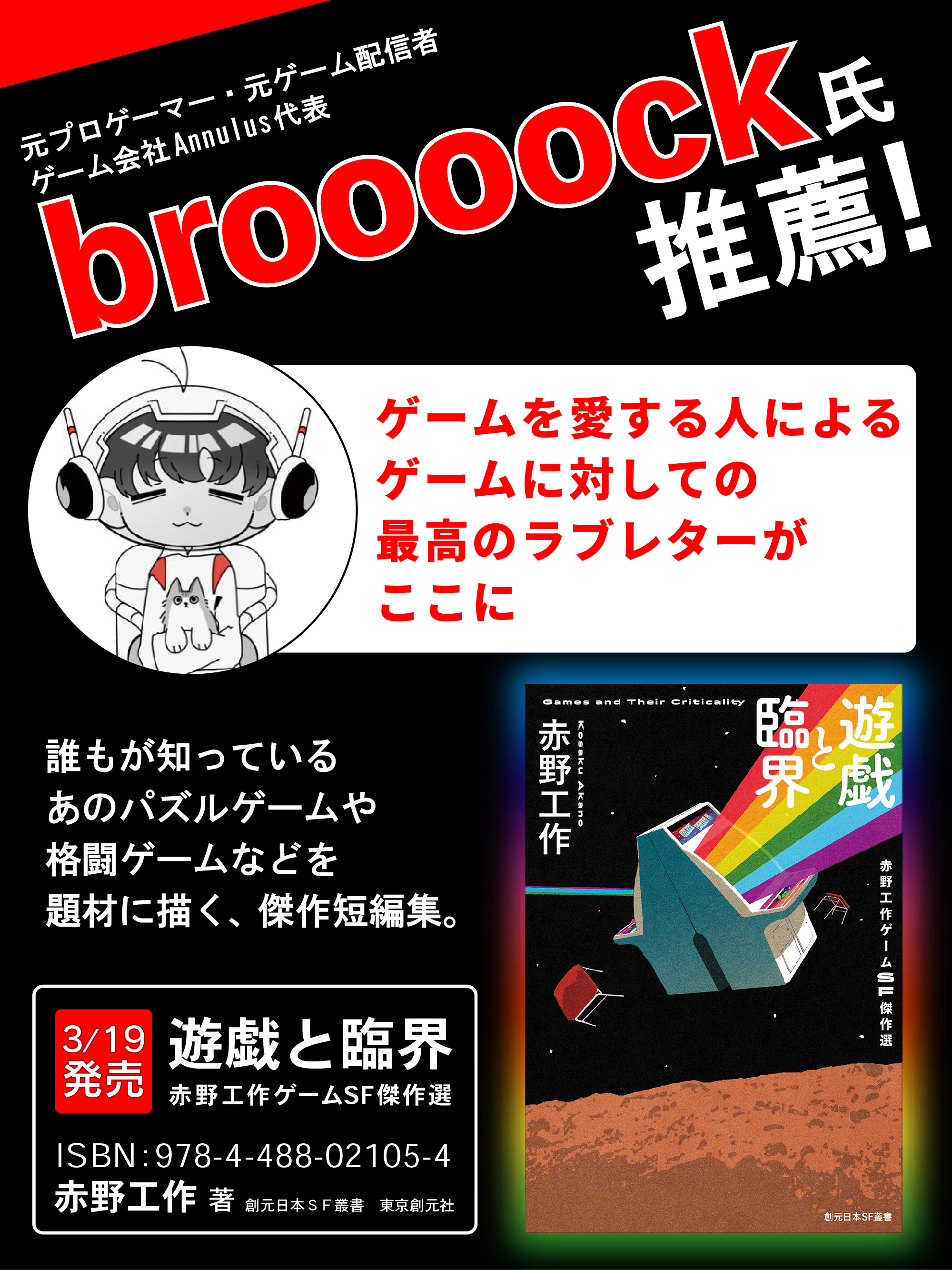 赤野工作氏によるゲームSF短編集「遊戯と臨界 赤野工作ゲームSF傑作選」本日発売。ゲーム愛にあふれる11篇を収録