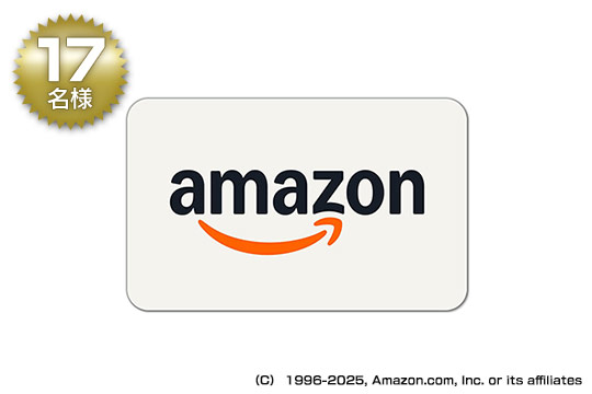 Amazon.co.jpで販売されている商品やデジタルコンテンツの購入,Amazonプライム会費の支払いなどに使用できる,Amazonギフトカード(1万円分)を17名様にプレゼント(ここで無理矢理25名様に調整です)。お好きなゲームやグッズなどを購入にお役立てください。