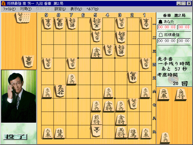 プロ棋士が監修した将棋ソフト。実戦局面から選りすぐった盤面や,オリジナル新作盤面100番から指し継いでの勝ち抜きモードなどが楽しめる。平手からの対局モードでは監修のプロ棋士が相手になってくれる。画面上では名人の表情が状況に応じて変化し,臨場感のある対局を実現。