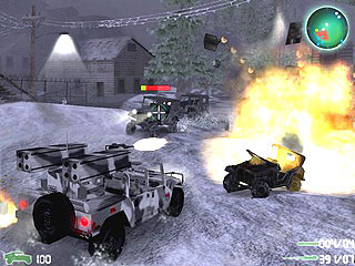 イラク/カンボジア/アフガニスタンといった戦場を舞台に,軍用車両ハンビーに乗って戦闘を繰り広げる三人称視点のアクションゲーム。常にがバンビーに搭乗して戦闘するわけではなく,時には徒歩にて逃走したテロリストを追跡し,人間同士の銃撃戦も強いられる。 |