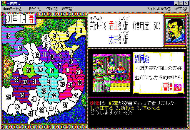 トゥ ポイント"や,政治や軍事を"フェイズ"に分けて表現しているなど,同社の人気シリーズ「天下統一」を思わせる。異なるシステムも多数備えている。 |