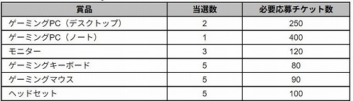 チャレンジャーズワールドミッションをクリアして集めた応募チケットで、お好みの賞品に応募しましょう。ゲーミングPCや周辺機器加えて、NEXONポイントや本キャンペーンのオリジナルグッズなどの豪華賞品を、抽選でプレゼントいたします。<応募期間>