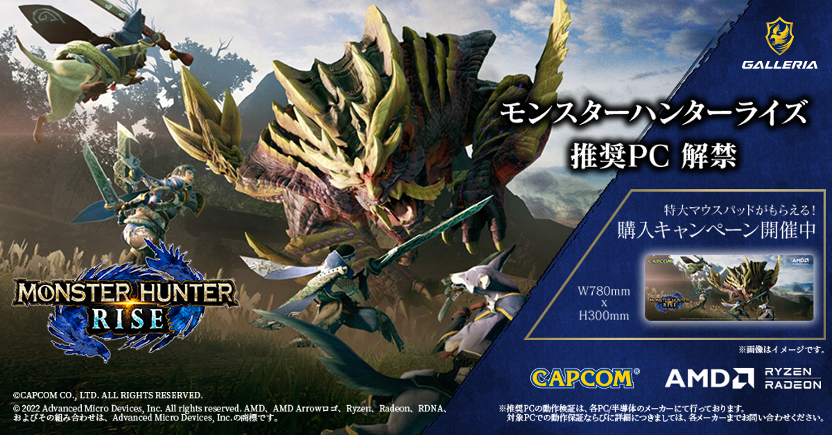 GALLERIA,「モンハンライズ」推奨PCを発売。先着でオリジナルマウスパッドがもらえる
