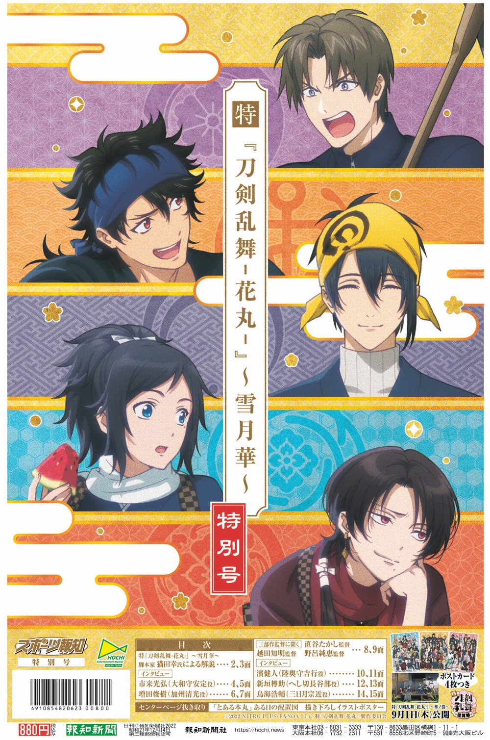 「特『刀剣乱舞−花丸−』〜雪月華〜」特別号,スポーツ報知から9月1日発売