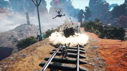 世界とその表面下に潜むものを、徒歩で、メカで、ジェットスキーで、気球で、そしてエリア独自の乗り物に乗って探索しよう。死に逝く荒野、地下世界に編み目のように張り巡らされたトンネルやバンカーを駆け巡り、山脈や列島までたどり着こう。この色鮮やかな世界には、多くの発見や謎が眠り、たくさんの敵やおかしな仲間たちとの出会いが待ち受けている。