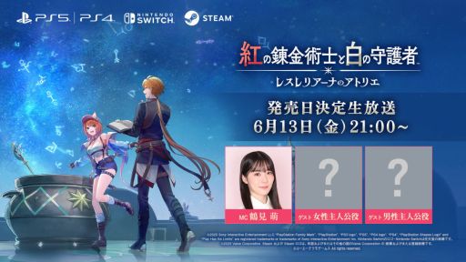 年内に発売を予定している錬金術RPG「紅の錬金術士と白の守護者 〜レスレリアーナのアトリエ〜」(PC/PS5/Nintendo Switch/PS4)。その発売日を発表する番組が,6月13日21:00から配信される予定だ。
