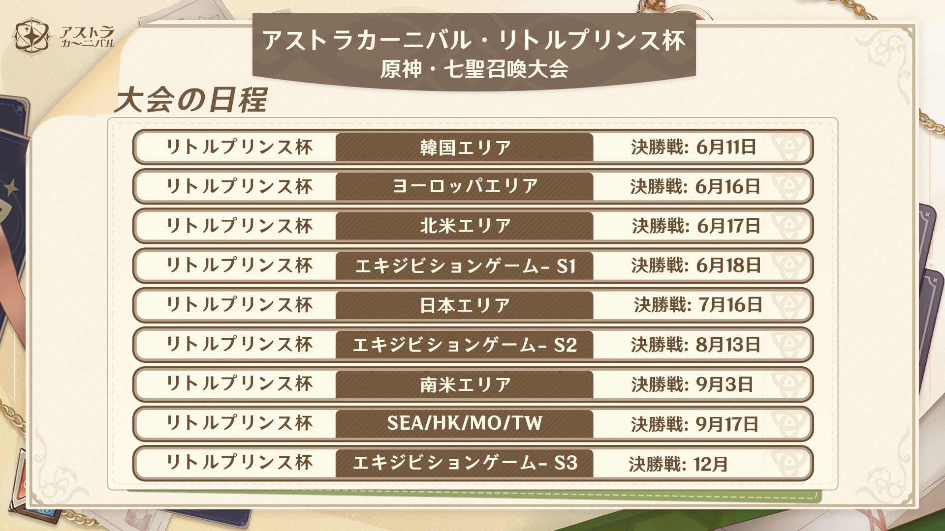 「原神」,カードゲーム“七聖召喚”の国際大会“アストラカーニバル・リトルプリンス杯”の情報を公開。日本リージョン大会の賞金総額は500万円