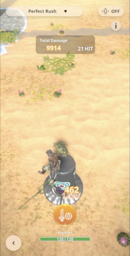 本作の狩猟笛はその特徴を継承しつつ,音符を青と赤の2種類に絞り込み,スマホでも操作しやすくなっている。具体的には,画面をタップすると青,長押しすると赤になるので,旋律が青青赤青ならタップ・タップ・長押し・タップという操作となる。
