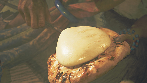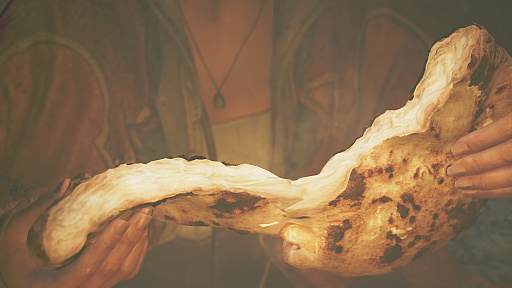 ちなみに該当のムービーシーンをよく見ると,ハチミツらしき琥珀色の液体がかけられています。なので,この食べ物は厳密に言えば「ハニーチーズナン」と呼ぶべきですが,本稿ではワイルズナンと固有名詞化することで,正しき名称問題を避けることにしました。賢い!