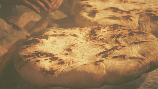 「ナン」は(現在は)イランを起源とし,古代メソポタミアからアジア方面に向かって広まっていった料理とされます。作中ではナンとは言及されておらず,「パン」の部類の可能性もありますが,見た目とワイルズの世界観を鑑みると,我々の世界ではチーズナンと呼ぶべき物体そのもののため,今回はナンと断定しました。