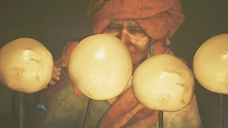 該当のムービーでは,禁足地調査隊のアルマがナンを口にするとき,「いい香りですね。麦の一種ですか?」と発言します。これに対し,村長は答えを言いませんが,「豆ともすごく合うんですよ」と返します。