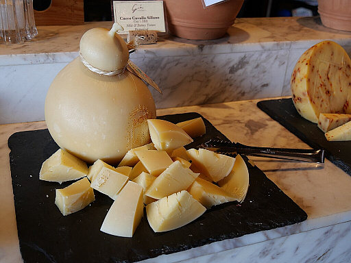カチョカヴァッロは弾力があり,味わいも深く,匂いなどのクセも少ないため,日本人に好まれやすいチーズといった印象です。それこそ,モッツァレラから水分を抜いて固形化したような食感ですね。