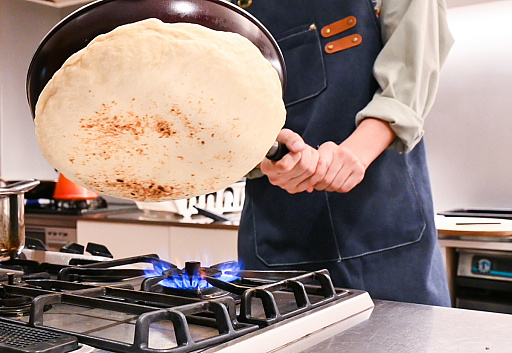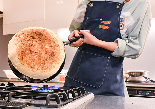 一般的なナンやパンは,家庭用オーブンなら3分〜5分ほどで焼き上がります。一方,ワイルズナンはやはり厚みがあるので,表面の色合いと焼け具合を加味して,計10分ほど様子見しつつ焼きました。