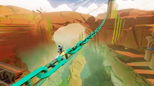 Sword of the Seaは空を飛ぶ剣に乗って疾走する,アクションアドベンチャーゲームだ。スケートボードやスノーボードのゲームにインスパイアされたという作品で,あらゆる地形をホバーソード(?)で疾走する爽快感を味わえる。