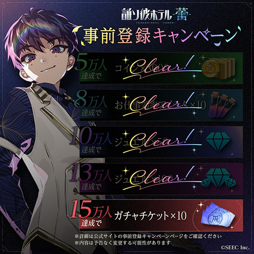 『誰ソ彼ホテル -蕾-』の事前登録者数が13万人を達成しました!