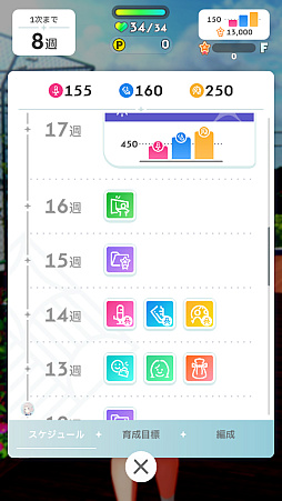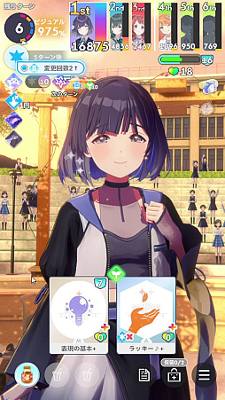 試験中はここまでに解説したスタンダードな戦い方以外にも,「保留に(切り札ではなく)レッスン中1回カードを送り,最初の全力時は不必要なカードを切りまくるデッキ圧縮に活用」だったり,スコアよりもクリア優先なら「次のターンで全力に入りたくないから,リターンを減らしてでもターンスキップ」だったりも戦略となる。