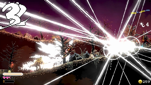しかし実際のところ、『Berserk or Die』は、完璧なタイミングでヒットを放ち、敵がピクセルの飛び交う画面を何度も何度も横切るのを見る満足感がすべてです。