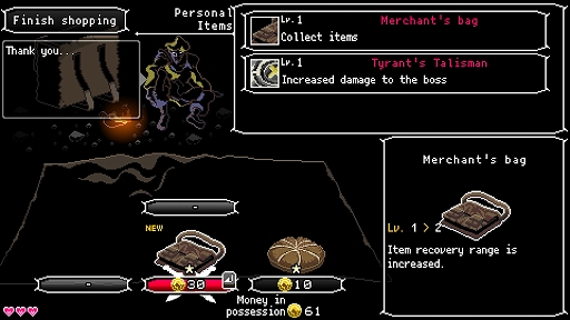 - 夕暮れ時に行商人の品物を見て回り、回復やパワーアップのための魔法のアイテムを買おう。