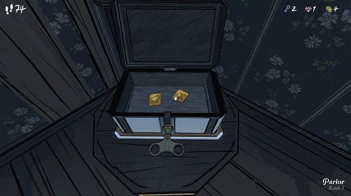 デッドエンド(行き止まり)を作ってしまうと先に進めなくなるほか,後半になるほど鍵が掛けられている扉が増えていく。さらに,部屋を通過するごとに減っていく体力が0になると,強制的に探索が打ち切られてしまうので,それらを管理しつつ進まなければいけない。