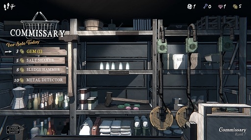 これだけなら,比較的シンプルなパズルゲームといった雰囲気だが,本題はここから。部屋には「鍵」「コイン」「宝石」などのリソースが配置されていて,それを使って先へと進んでいくわけだが,これがまたカッツカツなのだ。拾ったものだけでは確実に足りず,途中で探索が止まってしまうだろう。