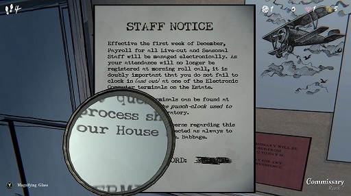 各部屋にはパズルだけでなく,ストーリーを感じさせる手紙や写真,絵画,新聞記事,書籍などが多数存在する。それらの情報をつなぎ合わせることで,サイモンが屋敷にやってくるに至った背景や,屋敷に住む人々,この世界の歴史や情勢などが明らかになっていく。