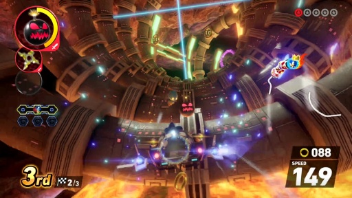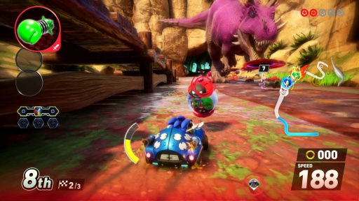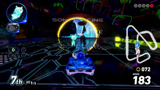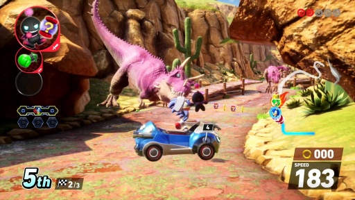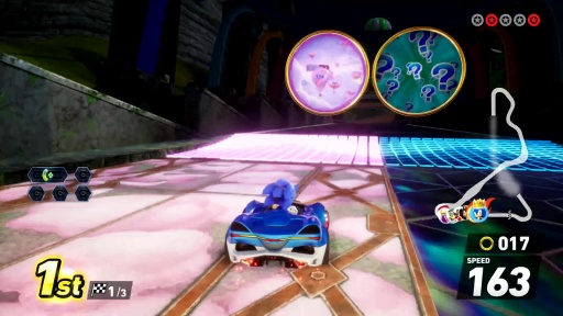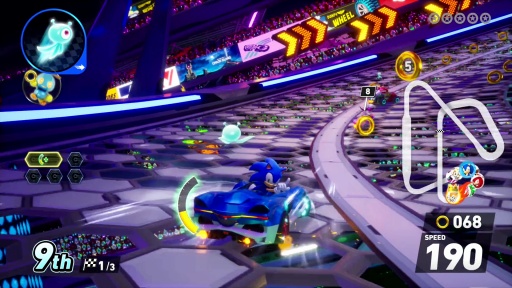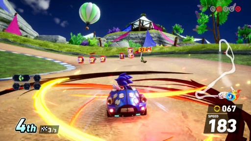 「ソニック&オールスターレーシング」シリーズの流れを汲む,ソニックと仲間達がレースを繰り広げる新作だ。コース内に設置された「トラベルリング」によって次元を超えるレースが展開し,周回を重ねるとコース内のギミックが変わる独自の体験が味わえる。