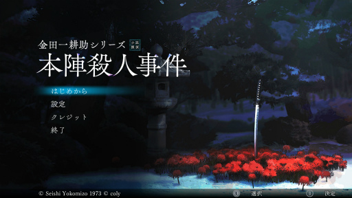 本作は,探偵作家の横溝正史氏による「本陣殺人事件 金田一耕助ファイル2」(角川文庫)を原作とした作品で,名探偵・金田一耕助が挑んだ密室殺人事件の真相に迫っていく,ミステリーパズルノベルゲームだ。