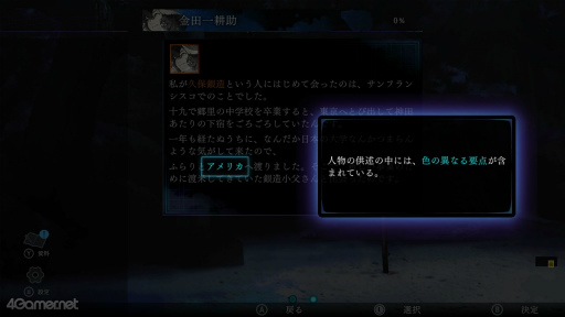 供述は,関係者ごとに整理されている。同じ単語でも,相手によって知っている内容が異なり,さまざまな人物の話を聞くことで,事件の全容が少しずつ明らかになっていく仕掛けだ。
