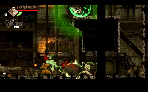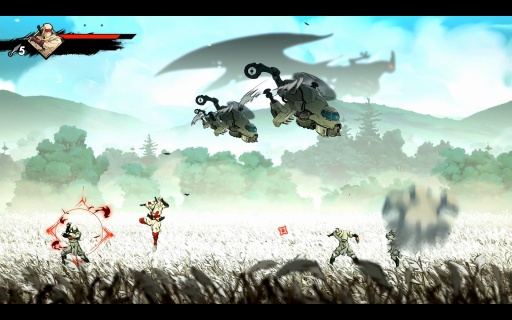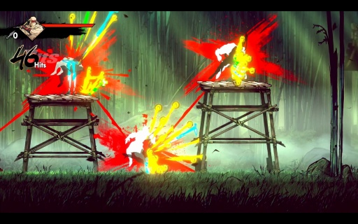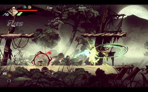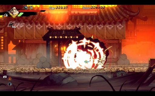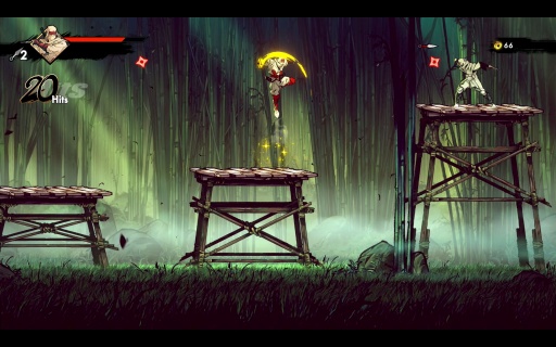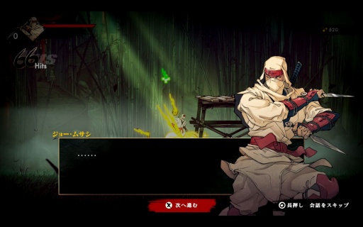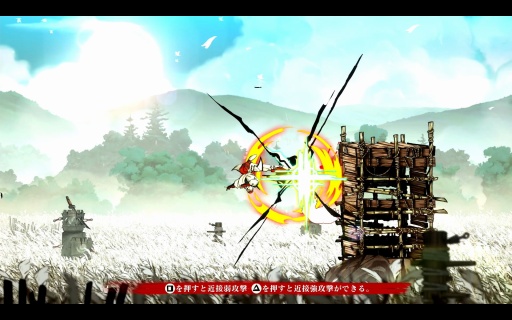 こうした手触りの良さはバトルも同様だ。ムサシは刀と手裏剣を基本に多彩な攻撃方法があり,これらがスムーズにつながっていくため,いろいろな戦法を試したくなる。アートの良さ,アニメーションのキレも相まって,もはや何をしてもカッコいい。
