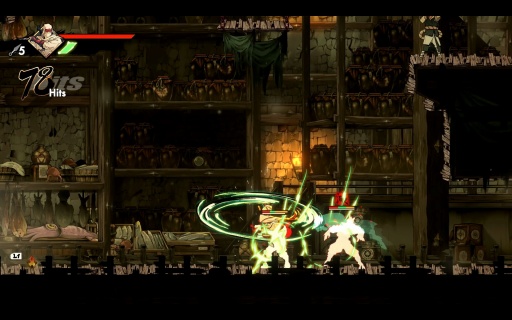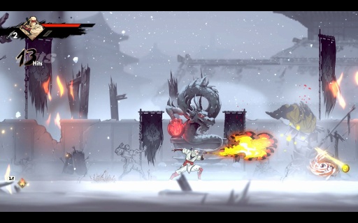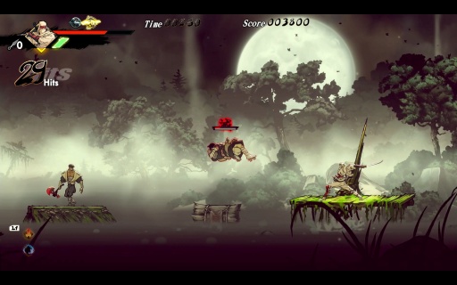 2Dアクションゲームを極論すると,ジャンプでギミックを乗り越えていくゲームだが,本作は2段ジャンプ中に空中制御が効き,着地がズレてもシステムの補正により崖に掴まってくれるし,ステージ外へ落下した際のペナルティも体力が少し減るだけで済む。踏み切り位置を完全に誤るといったミスでもない限り,2段ジャンプや回り込み/空中ダッシュの「飛燕」で立て直しを図れて,システムも崖に掴まるといったように助けてくれる。