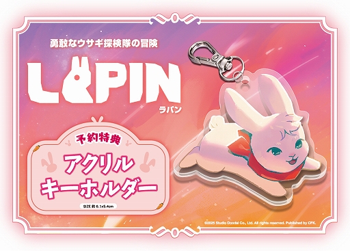 弊社はNintendo Switchパッケージ版『LAPIN(ラパン)』の発表と共に、通常版と初回限定版の予約受付を実施しています。パッケージ版の日本国内の流通はハピネットが担当しています。通常版、初回限定版の購入者全員に、初回特典として主人公ウサギ「リーベ」のアクリルキーホルダーをプレゼントいたします。