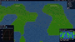 文明のエネルギー消費や自然破壊、そして惑星全体への影響もシミュレーションされています。複数の種類の動物を文明化すると、お互い戦争を始めるので、どちらが勝つかを観察することもできます。