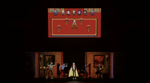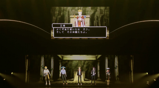スクリーンには,ゲーム風にデザインされた仲間たちのアバターが王様の前に整列する場面も映し出され,現実と映像がリンクした演出に,観客の期待も高まっていく。