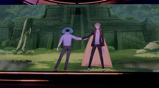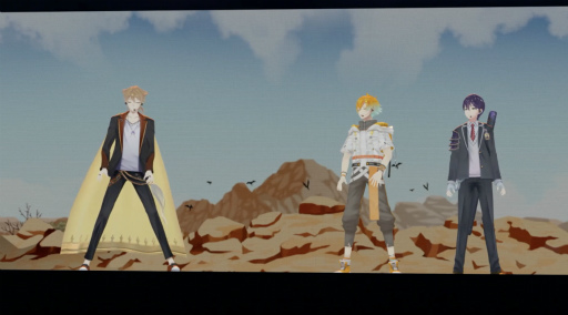 試練を乗り越えてドラゴンを倒した3人は,「中華の石」を無事に入手する。「世界を救えるようなアツい曲,歌わないっすか?」という言葉をきっかけに,伏見さん&宇佐美さんが披露したのは「UNION」(OxTカバー)。宇佐美さんにとっては3Dでの初デュエットとなるこの曲は,聴いているだけで勇気が湧いてくるような熱いパフォーマンスとなっていた。