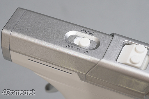 リコイルの発生サイクルの変更もでき,本体上部にはリコイル設定スイッチがある。「OFF」「1X」「2X」の3つがあり,「OFF」はリコイル機能を無効化するもので「1X」「2X」はリコイルの発生サイクルを示す。